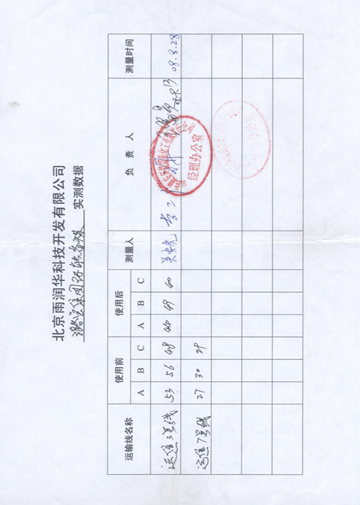 北京雨潤華公司客戶使用對比報告