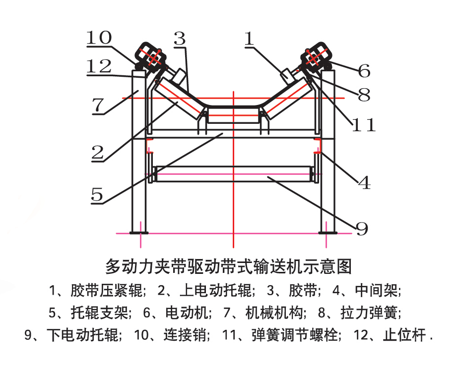多動力夾帶驅(qū)動帶式輸送機示意圖