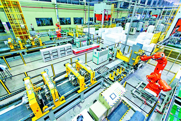 在物料搬運(yùn)環(huán)節(jié),企業(yè)在自動(dòng)化設(shè)備的前提下改造加入了智能化設(shè)備,在部分生產(chǎn)環(huán)節(jié)已實(shí)現(xiàn)無(wú)人操作,通過(guò)這些智能化的改造以后,在搬運(yùn)的過(guò)程中,通過(guò)碼垛手進(jìn)行碼垛,碼垛完以后,就由碼垛機(jī)器人發(fā)送指令給AGV自動(dòng)搬運(yùn)車(chē),然后由AGV自動(dòng)搬運(yùn)車(chē)將貨運(yùn)到倉(cāng)庫(kù)指定的位置,實(shí)現(xiàn)機(jī)器指揮機(jī)器的工作。