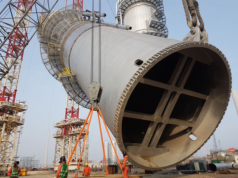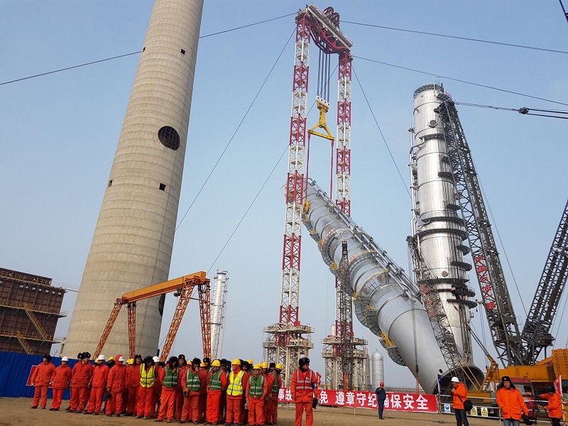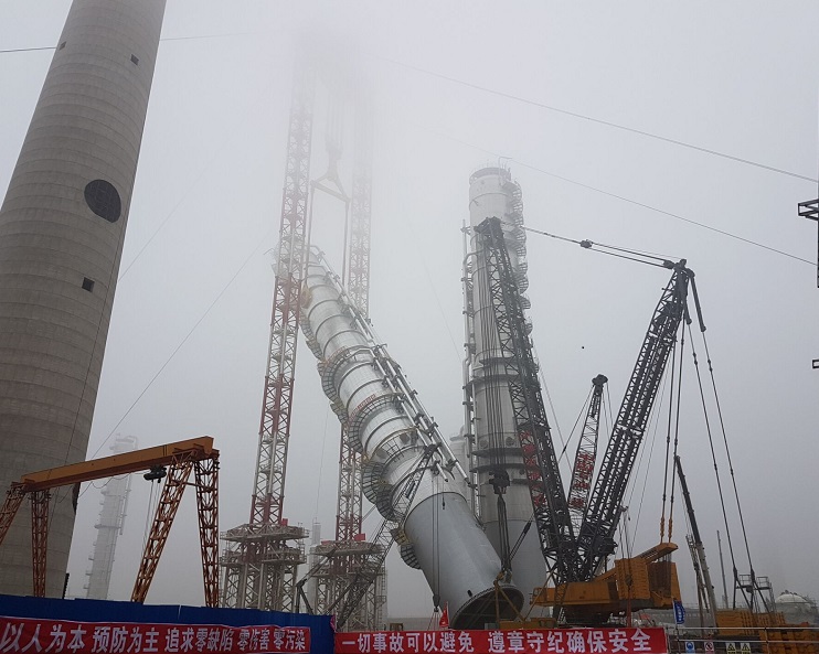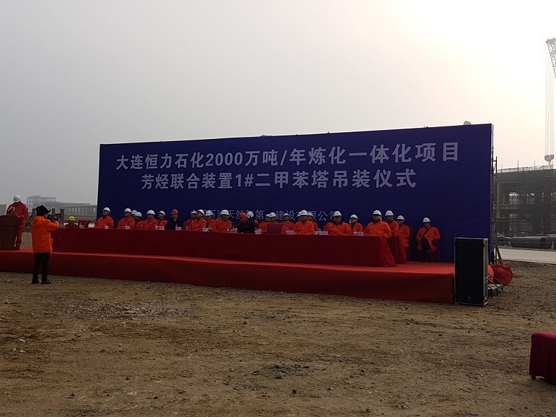 2018年3月19日上午,大連恒力石化2000萬噸/年煉化一體化項(xiàng)目芳烴聯(lián)合裝置1#二甲苯塔吊裝正式啟動(dòng)。