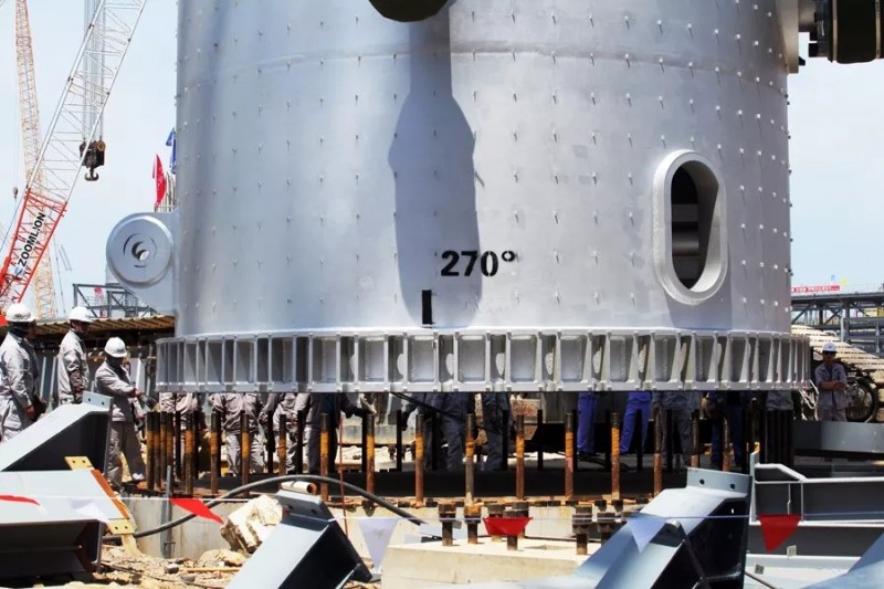 據(jù)吊裝現(xiàn)場(chǎng)服務(wù)工程師王瑜介紹:“600萬噸/年柴油加氫裝置一段反應(yīng)器的外徑尺寸約5米,高約51.368米,起升總高度為110.9米。起重機(jī)產(chǎn)品額定工作載荷為1913噸,負(fù)載率為78.8%,這對(duì)起重機(jī)產(chǎn)品吊裝性能要求非常高。不僅如此,吊裝也受到天氣條件的影響,風(fēng)速過快會(huì)直接影響吊裝的穩(wěn)定性,增加施工難度。”