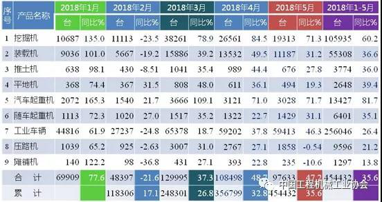 前5月工程機械銷量與出口均超預(yù)期 未來增長或又穩(wěn)又好 —— 文章正文2018-06-28