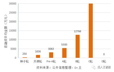 第四,從一級(jí)市場(chǎng)投資各輪的平均融資金額來(lái)看,機(jī)器人行業(yè)在天使輪與Pre-A輪等早期階段,所需的啟動(dòng)金額相對(duì)人工智能行業(yè)公司平均融資金額較高一點(diǎn)。到達(dá)A輪和B輪中期時(shí),投融資估值相對(duì)較低,也部分反映出盈利模式尚未成熟。