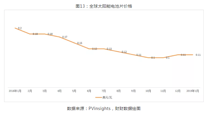 在價格方面全球多數(shù)地區(qū)已實現(xiàn)平價上網(wǎng),進(jìn)一步降價的需求并不強(qiáng)烈,尤其是經(jīng)過多年下降,組件占光伏系統(tǒng)的成本比重已從 2010 年的超過 57%降至 2018 年不足 34%,組件后續(xù)的需求在于進(jìn)一步提高功率以降低其他系統(tǒng)成本。因此我們認(rèn)為 2019 年產(chǎn)品價格仍將維持小幅下滑趨勢,利潤率逐步回升至合理水平。