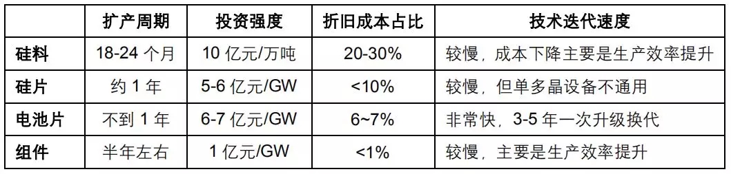 表1:光伏產(chǎn)業(yè)鏈各環(huán)節(jié)產(chǎn)能特點